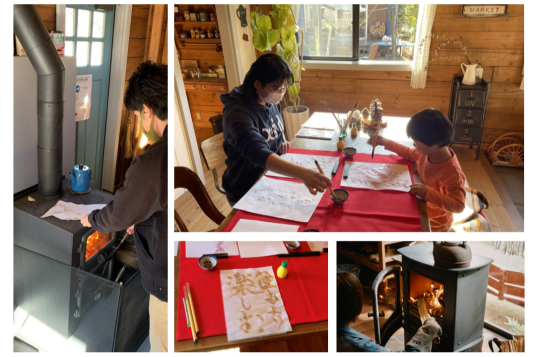 レモン果汁の書初めをあぶりだす昔懐かしい遊びや、おしるこ、福笑いなど、親子で楽しめる体験をご用意しました。